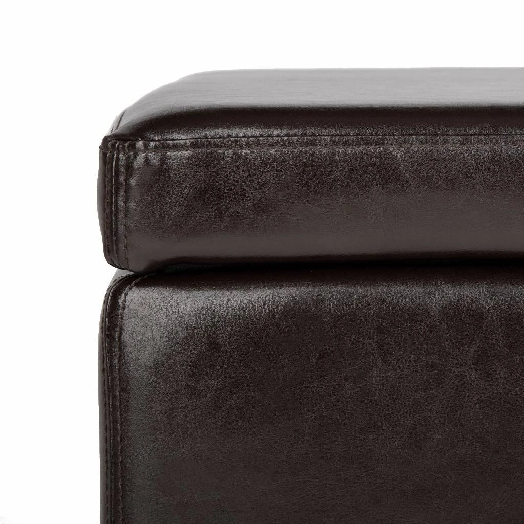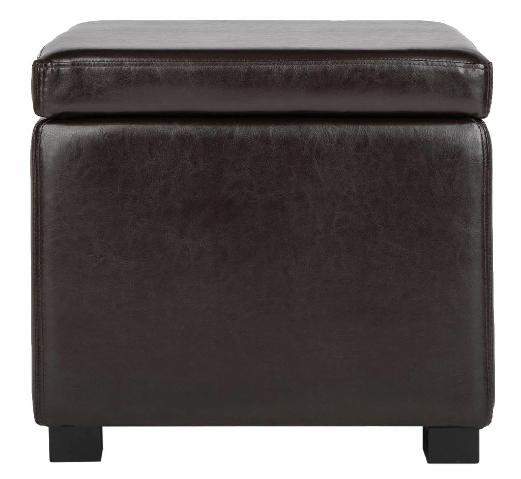 You’ll flip. The soft modern style of the Jonathan Flip Top ottoman brings form and function to any room with its hinged top for handy access to items you’ve stowed inside. Crafted with sumptuous brown bicast leather and black beech wood legs, it’s a study in handsome contemporary design.