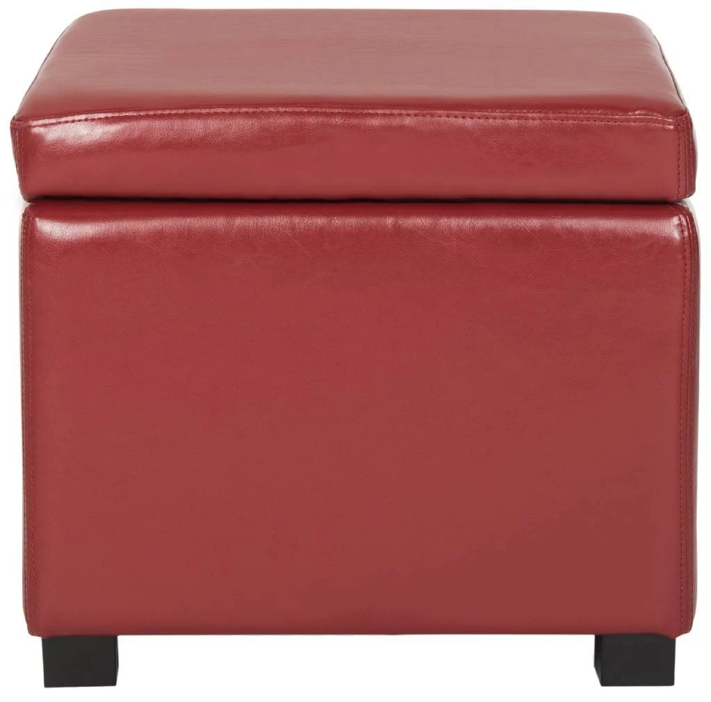 You’ll flip. The soft modern style of the Jonathan Flip Top ottoman brings form and function to any room with its hinged top for handy access to items you’ve stowed inside. Crafted with sumptuous red bicast leather and black beech wood legs, it’s a study in handsome contemporary design.