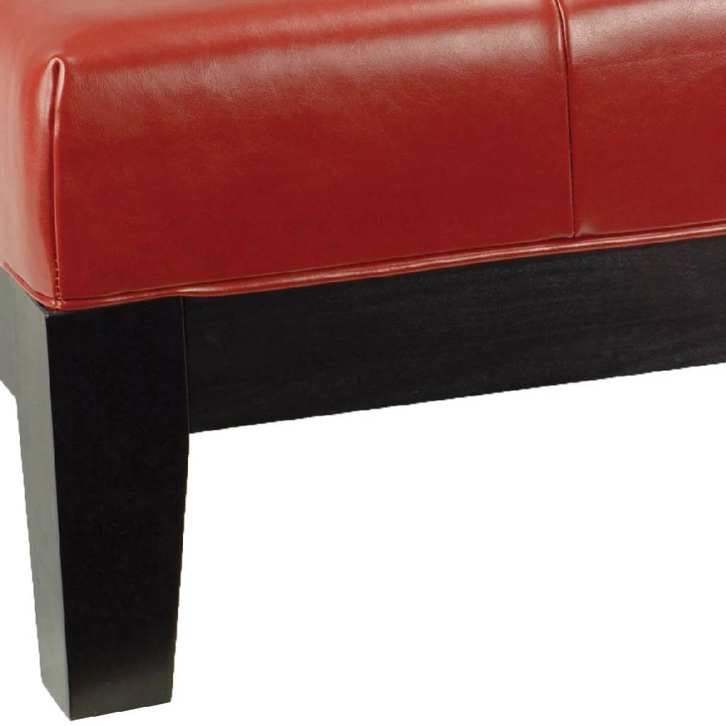 Ottomans designed to double as cocktail tables are a designer look that homeowners of all budgets and decorating tastes are incorporating into their favorite rooms. With quilted red bicast leather set in a black beech wood frame, our Cocktail Ottoman invites you to rest your feet or adorn it with drinks, knickknacks, books and more.