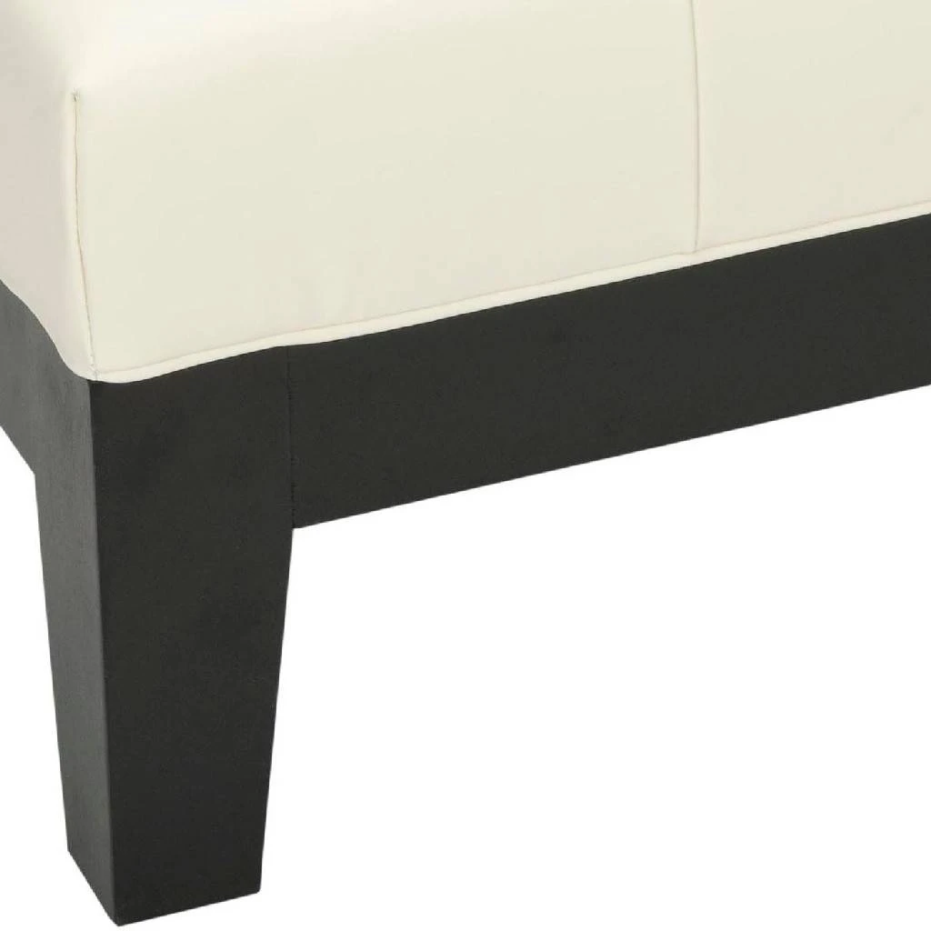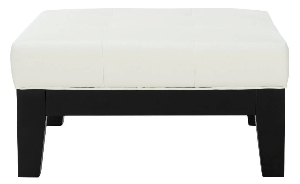 Practical and good-looking, the Jordan square cocktail ottoman is a dual purpose piece that provides extra seating and a place for cocktails, snacks, books and more. Crafted of chic but sturdy off-white bicast leather, its quilted top is set in an elegant frame of black beech wood.