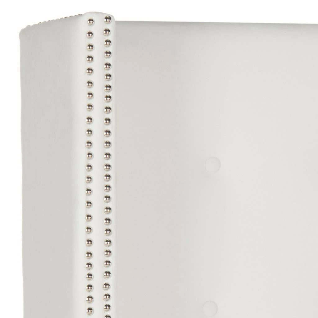 Designer details belie the simplicity of this Keegan Headboard’s rectangular silhouette. Enveloping arms, clean white velvet with dressmaker buttons, and silver nail head trim give Keegan’s classic shape a sophisticated upgrade fit for any .