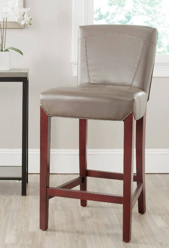 Choose the Ken Barstool for luxurious comfort at the kitchen counter or bar. Upholstered in clay-toned bicast leather with stitched detailing on its straight back, this eclectic stool’s sturdy frame is beech wood in an elegant cherry mahogany finish. With 30-inch seat height, Ken offers cushioned comfort and stylish seating that complements traditional or transitional interiors.