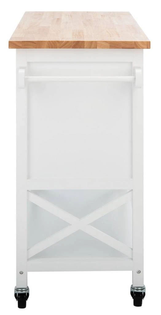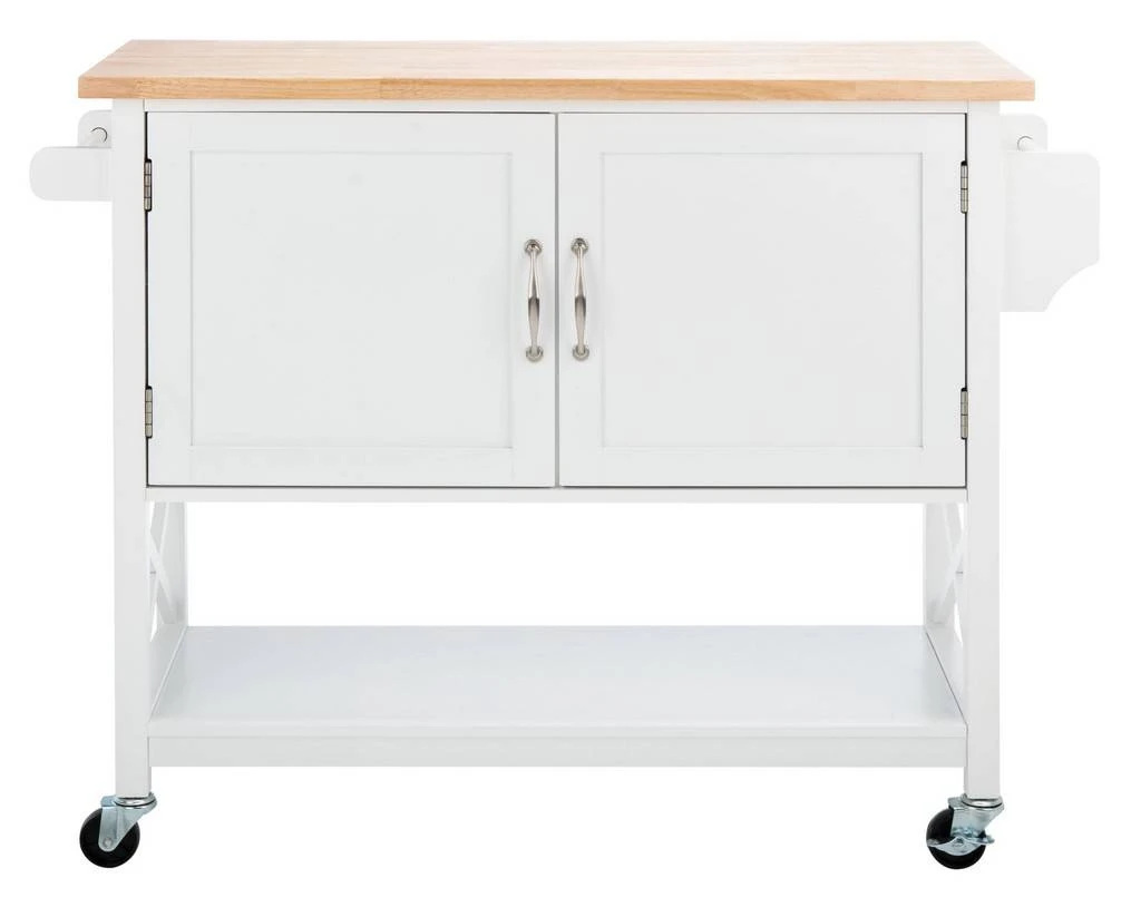 Every kitchen could use more counter or storage space, and this Kesler Kitchen Cart is the perfect solution to the age-old problem. Kesler’s bottom shelf and cabinet-style doors are ideal for storing spices, drinkware, or seasonal décor, and a mix of white and natural finishes effortlessly emanate warm country charm.