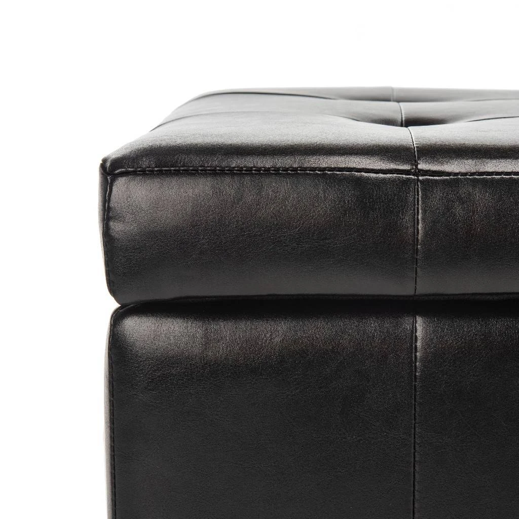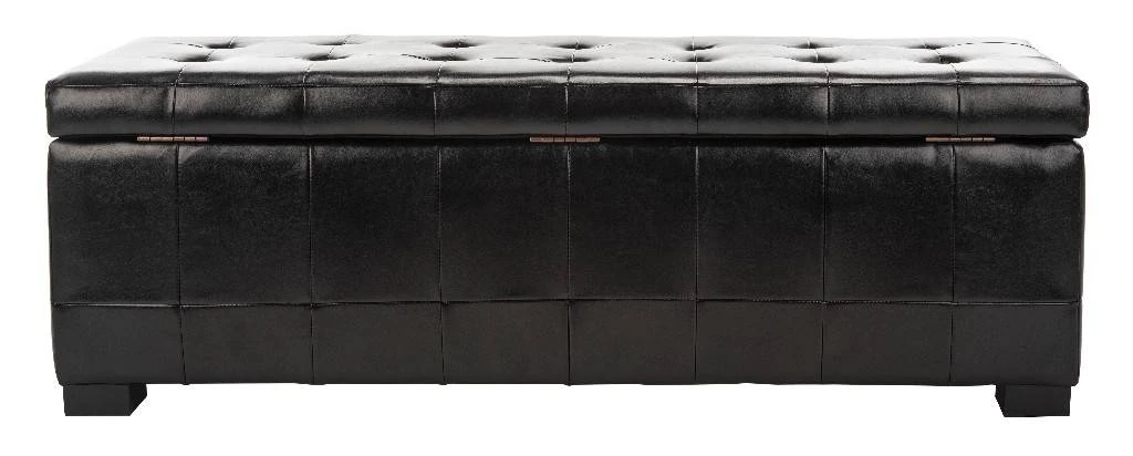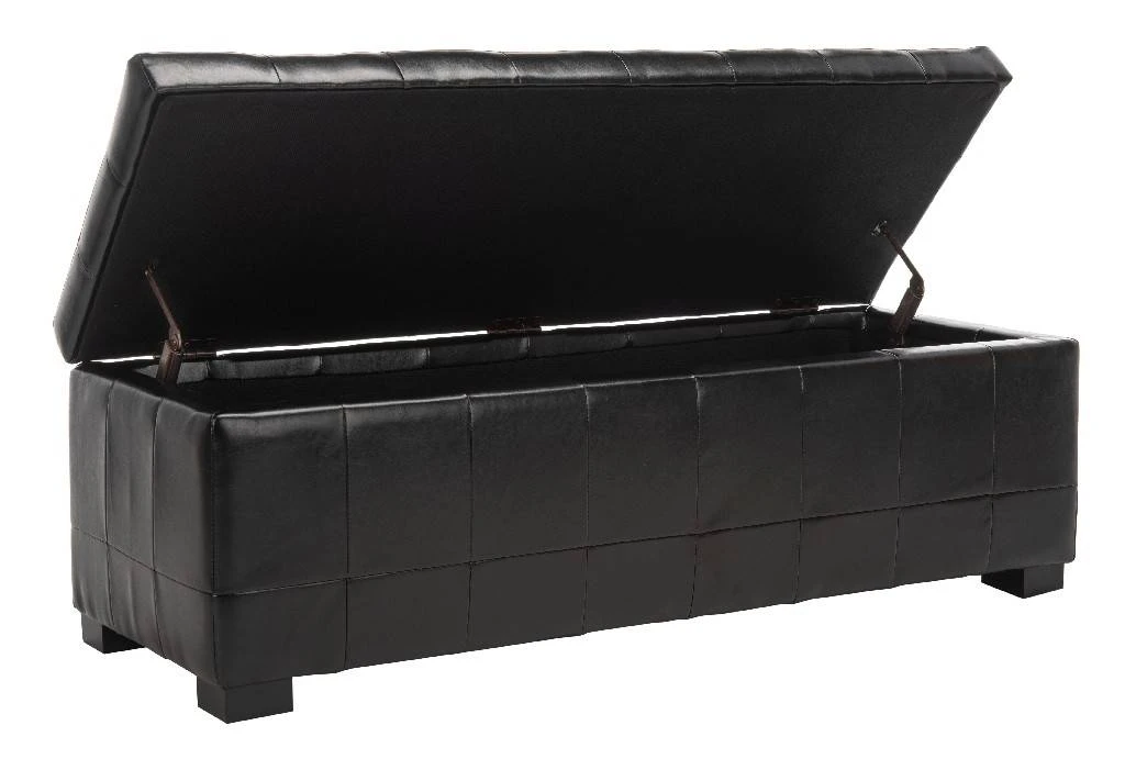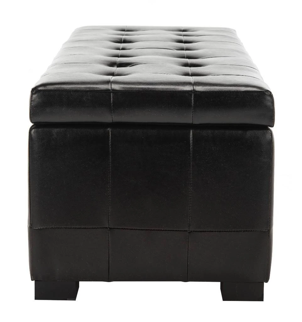 A modern adaptation of the old-fashioned steamer trunk, the beautifully upholstered Large Manhattan storage bench is perfect for dressing, lounging and stowing everything from blankets to sweaters. With black quilted bicast leather and button tufts on its hinged top, Manhattan stands on chic black beech wood legs – a great looking organization tool.