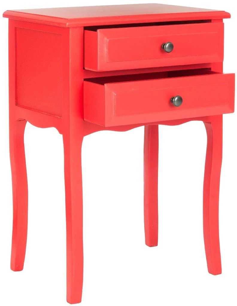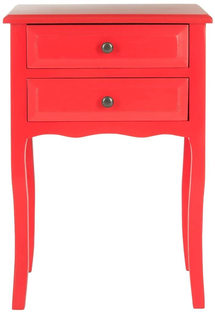 Feminine without the frill, the petite and traditional Lori end table was inspired by a hidden treasure at a Paris flea market. A chic red finish on pine wood lends a casual country French air, while two drawers with simple hardware make it at home in a or . With scallop detailing and cabriole legs, Lori is the perfect setting for precious objects you need to keep close to your heart.