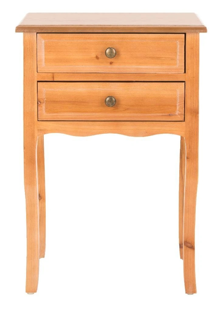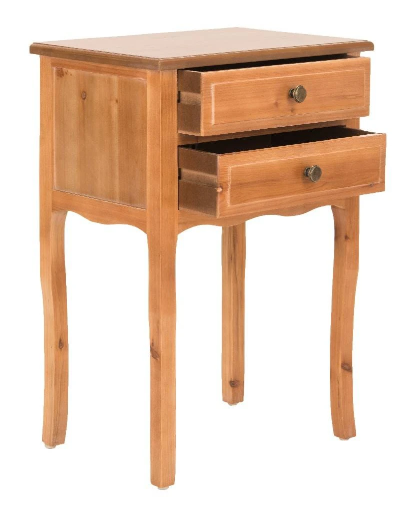 Feminine without the frill, the petite and traditional Lori end table was inspired by a hidden treasure at a Paris flea market. A natural finish on fire wood lends a casual country French air, while two drawers with simple hardware make it at home in a or . With scallop detailing and cabriole legs, Lori is the perfect setting for precious objects you need to keep close to your heart.