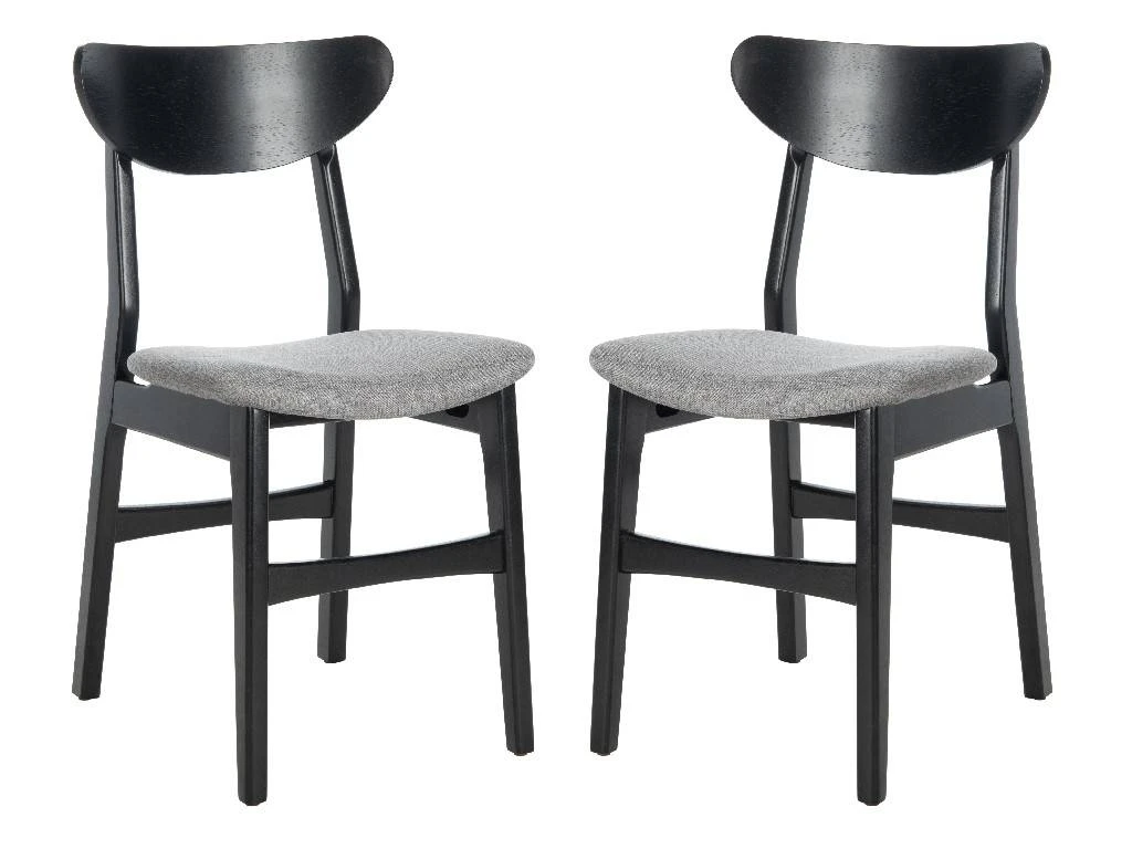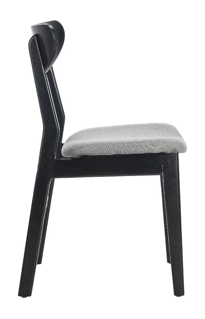 Bring the character of vintage style to any dining room with this retro dining chair. The contemporary spin on the beloved classic design features fine black wood construction and grey upholstery that instantly refreshes and updates any space.