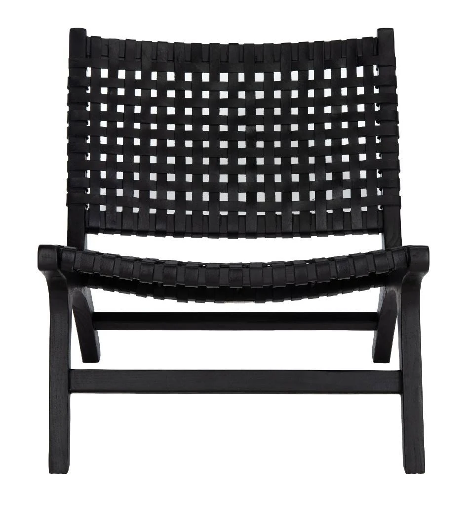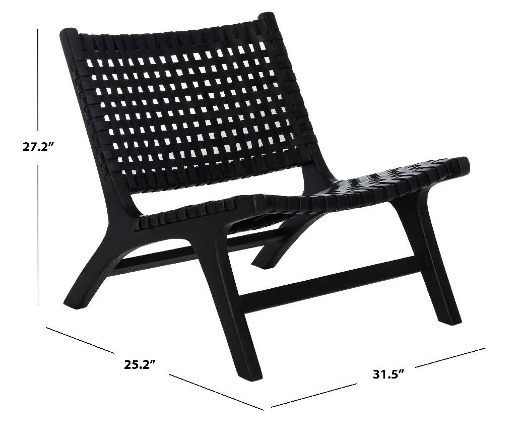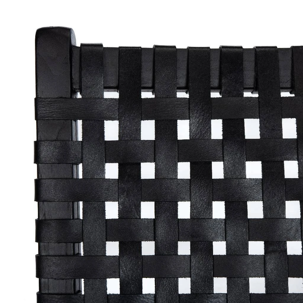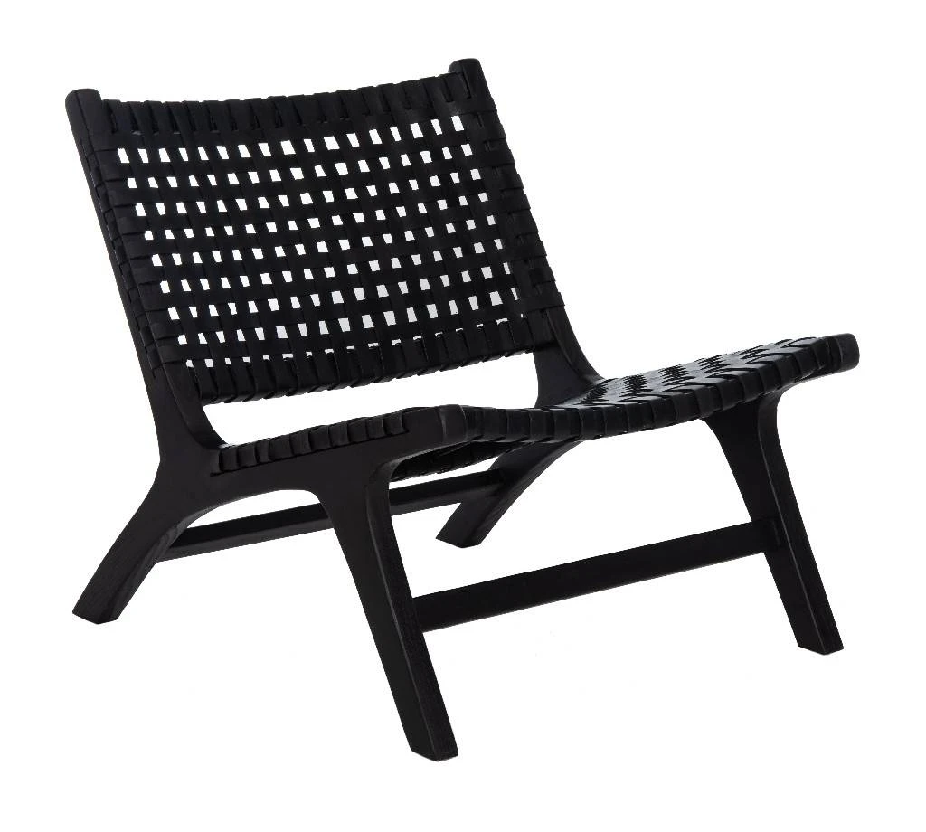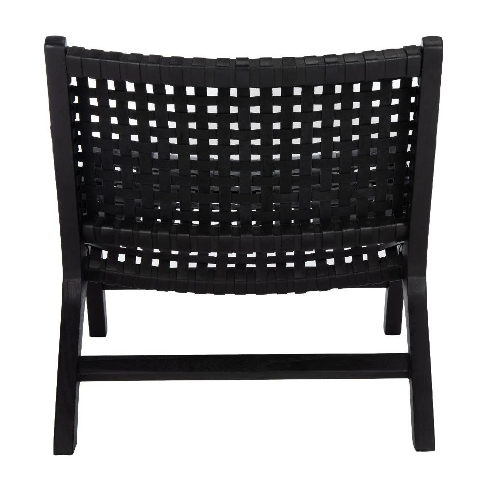 Bring cutting-edge contemporary style to any with this chic leather woven accent chair. Its intricately woven luxurious black leather and finely crafted sunkai wood frame create a modern, timeless classic. Designers often use it in pairs.