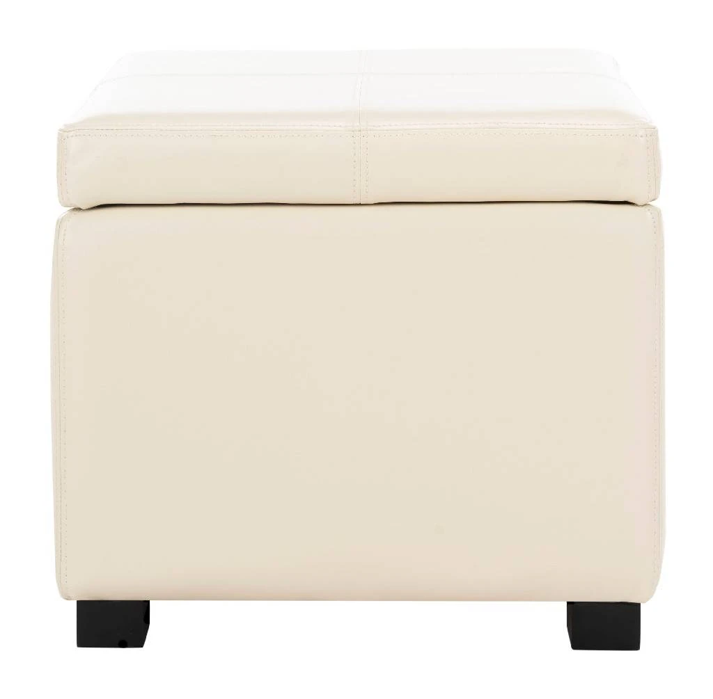 The Madison Square Ottoman is the star of the , family room or den. Crafted with flat cream bicast leather upholstery and birch wood legs in a black finish, its hinged top conceals the bits and bobs that contribute to never-ending clutter, while its cushioned top offers seating for that extra friend-of-a-friend.