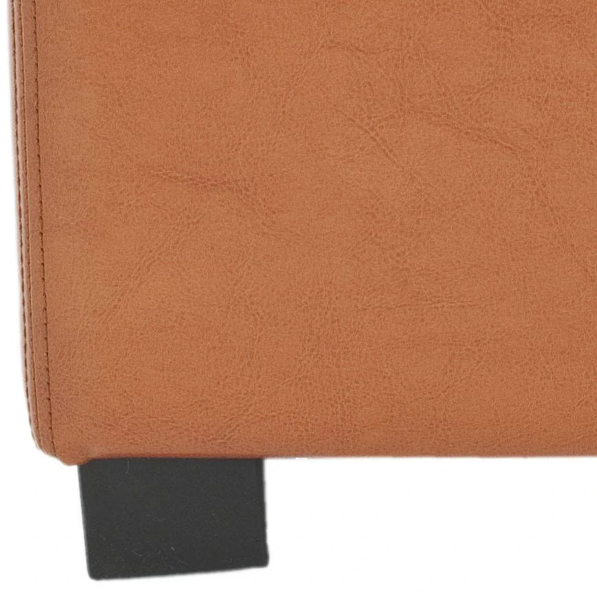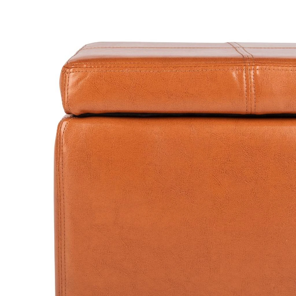 The Madison Square Ottoman is the star of the , family room or den. Crafted with sleek saddle brown bicast leather upholstery and birch wood legs in a black finish, its hinged top conceals the bits and bobs that contribute to never-ending clutter, while its cushioned top offers seating for that extra friend-of-a-friend.