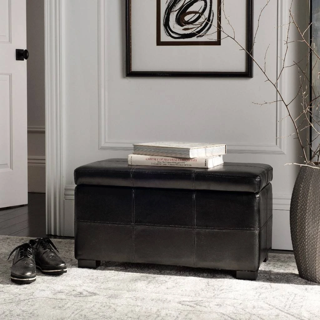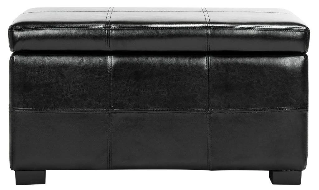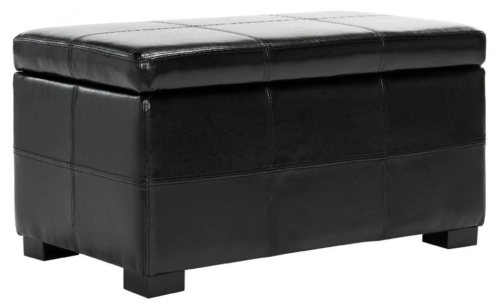 Good things come in small packages. Crafted with luxe black bicast leather and birch wood in a black finish, the small Madison Storage Ottoman brings soft, modern style to any interior. Perfect for storing extra blankets, remotes or even extra throw pillows, it also adds the ever-elusive extra seating at your next soiree.
