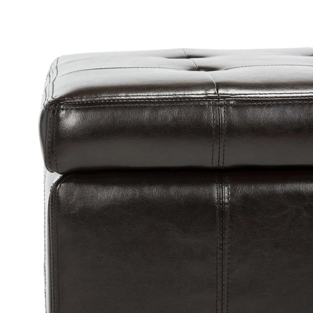 The Maiden Square Tufted Ottoman is an indulgence in luxe, functional contemporary style. Crafted with black birch wood and brown bicast leather, its posh tufts conceal ample storage space below. Ideal for any room in need of a chic, functional update.