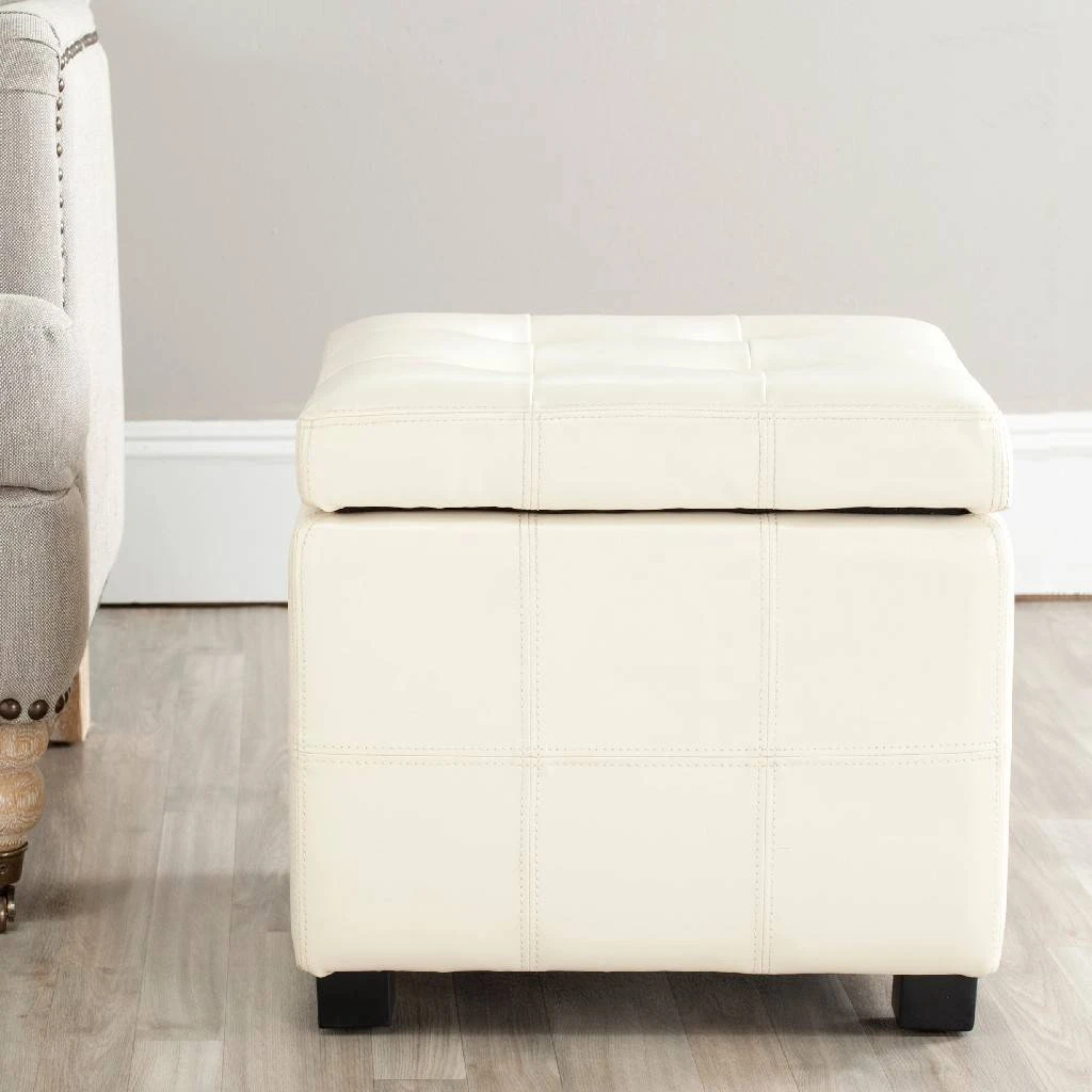 The Maiden Square Tufted Ottoman is an indulgence in luxe, functional contemporary style. Crafted with black birch wood and flat cream bicast leather, its posh tufts conceal ample storage space below. Ideal for any room in need of a chic, functional update.