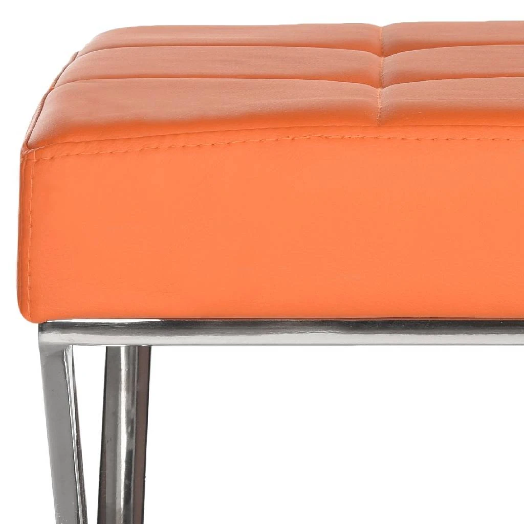 Inspired by the playful style of the Italian Memphis movement, this brilliant orange ottoman in PU leather adds instant warmth and character to any modern space. Polished stainless steel legs make it a contemporary classic.