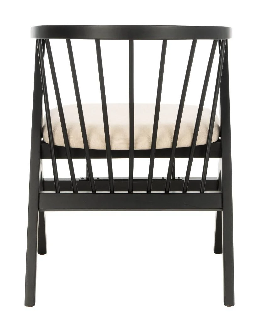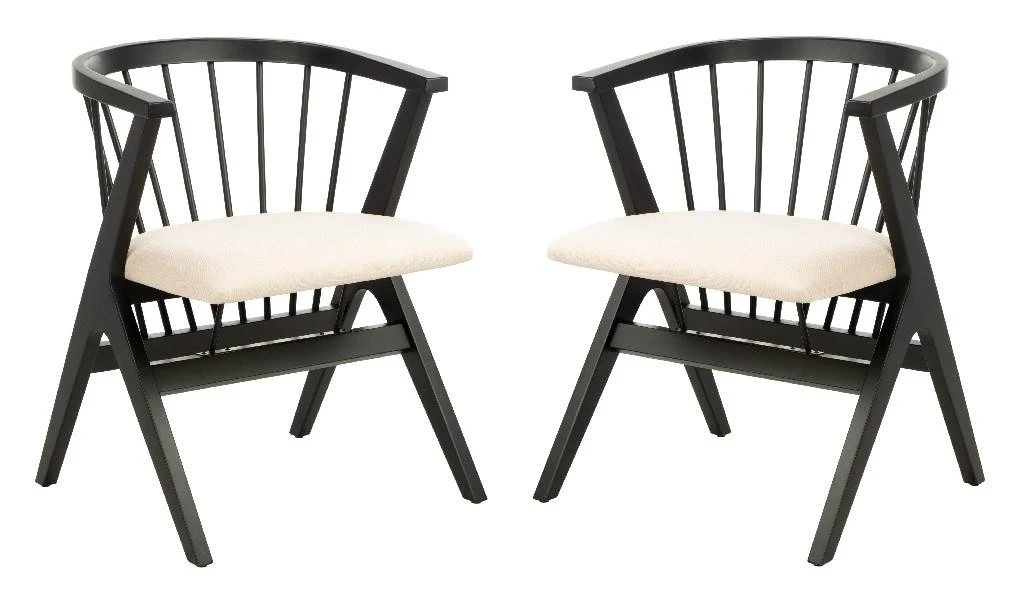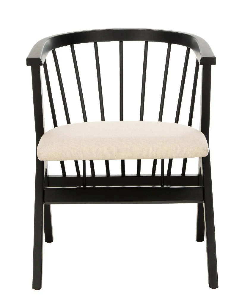 Bring the refinement of Japanese style and the warmth of Scandinavian minimalism to the dining room with this spindle dining chair. Constructed with wood, its chic black finish creates a strong silhouette. Designers love its neutral beige upholstery.