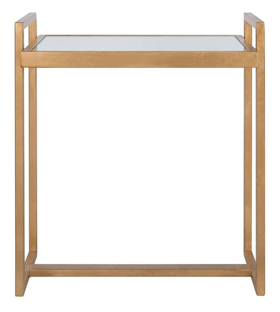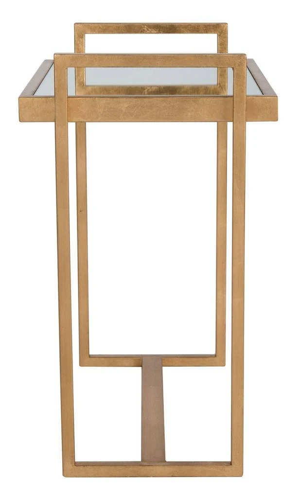 Classic angles and stunning details make the Noland Accent Table a showstopper. Crafted with a gold finish iron base and mirrored tabletop, its sophisticated style has made it a designer favorite.