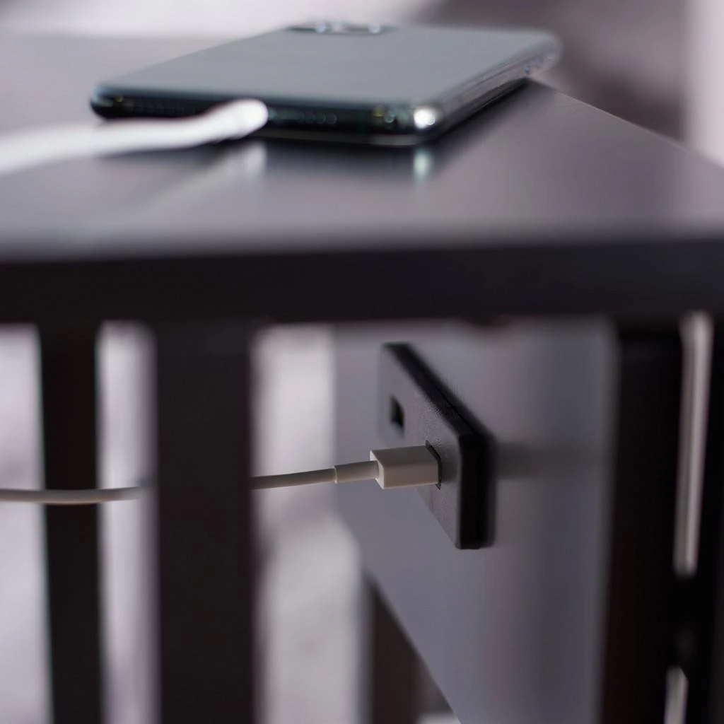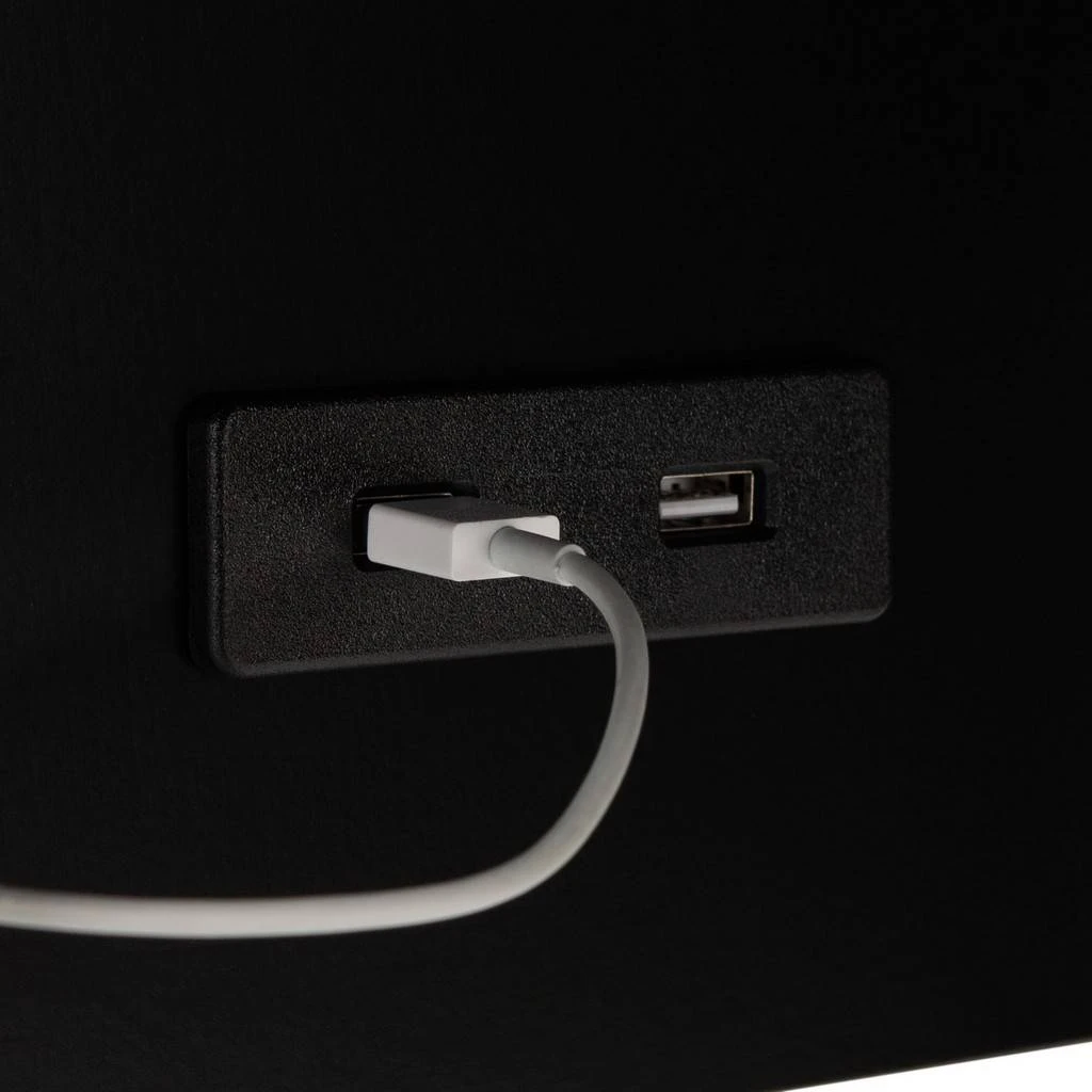 Never again will you have to leave the comfy spot on the couch to find an outlet to charge your phone with this Portland USB Side Table. Portland’s open black C-style frame is ideal for sliding the base beneath a sofa or chair so the top serves as a hand’s free surface for drinks and snacks, and two USB ports make charging devices a breeze.