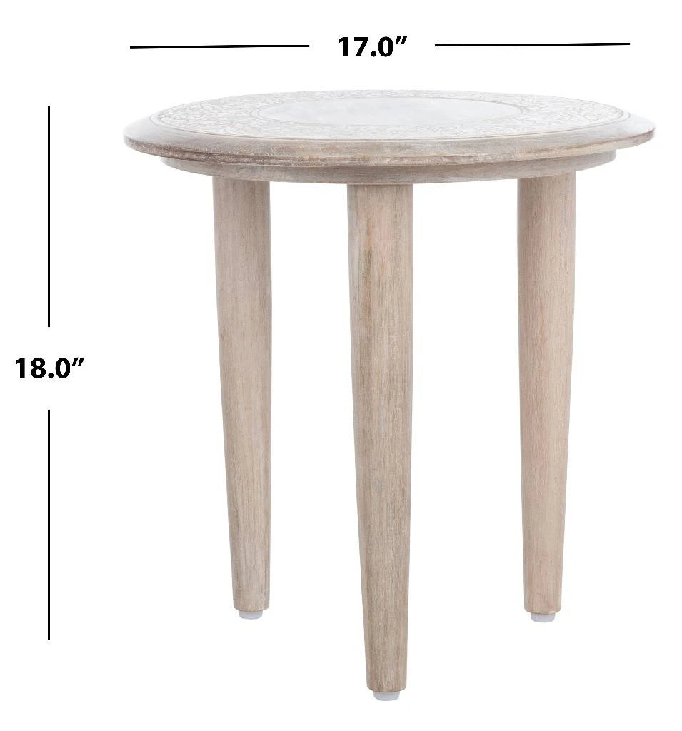 Dramatic and luxurious, this gorgeous carved side table is a contemporary heirloom. Inspired by the work of fine artisans, it’s meticulously crafted with wood and features a beautiful white washed finish the highlights its sophisticated exotic pattern.