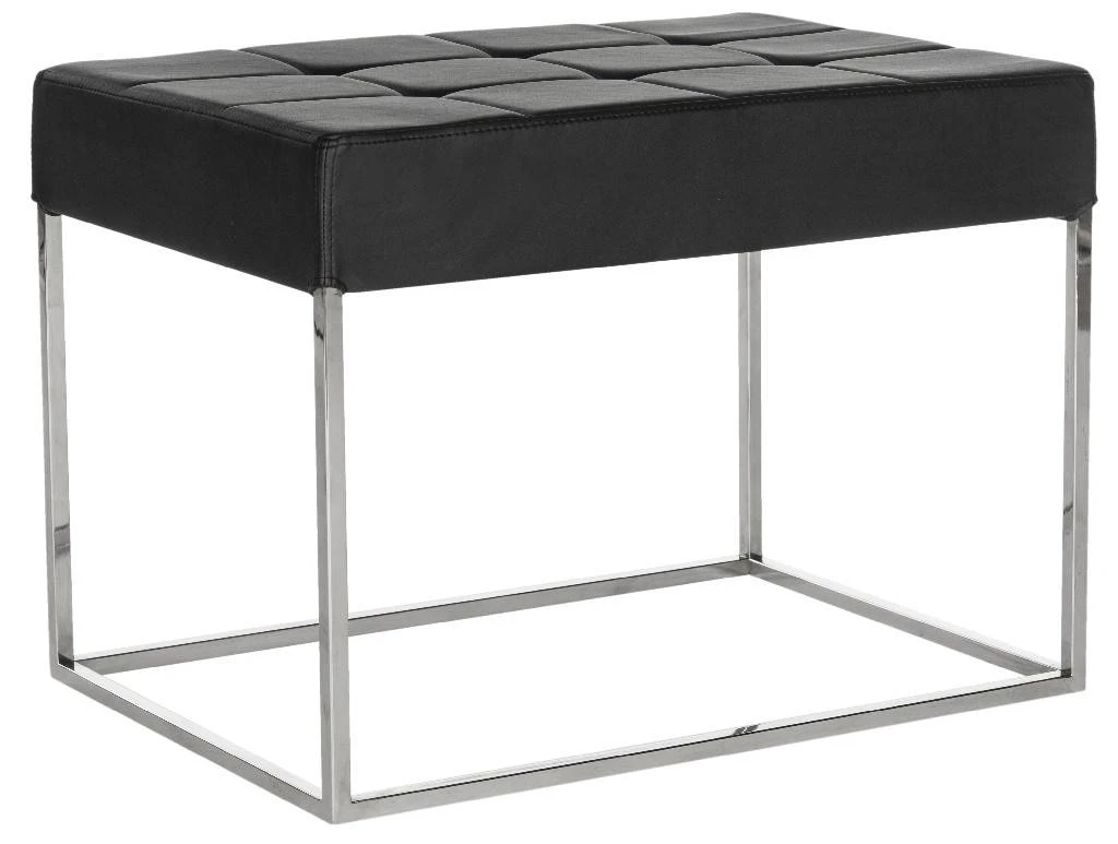 The seating in one of Barcelona’s top contemporary art galleries inspired the geometric style of this ottoman. Its black PU leather upholstery and polished stainless steel blend high design and luxurious comfort.