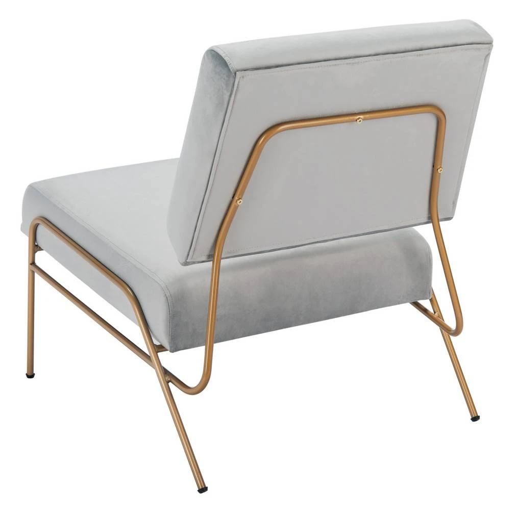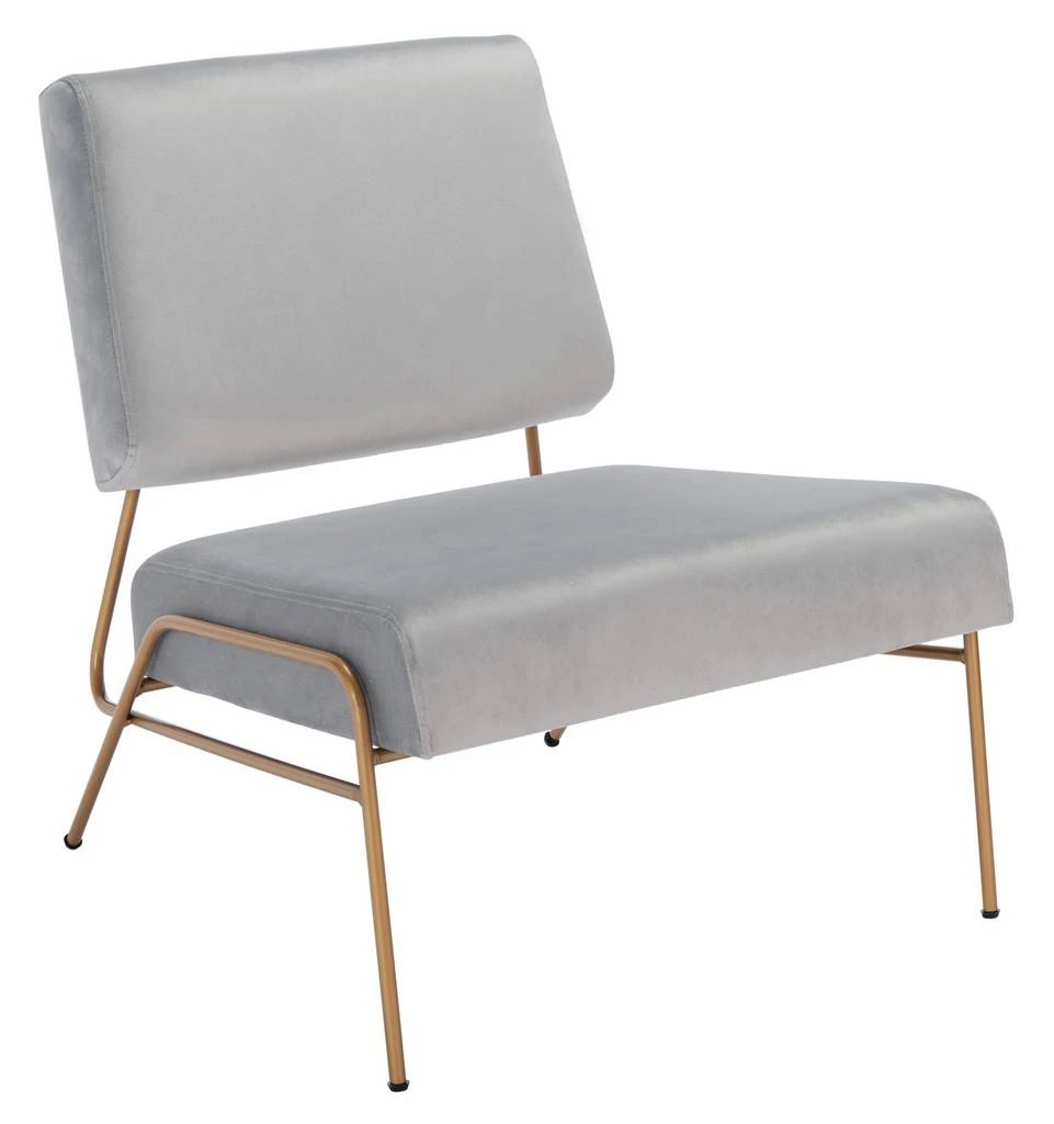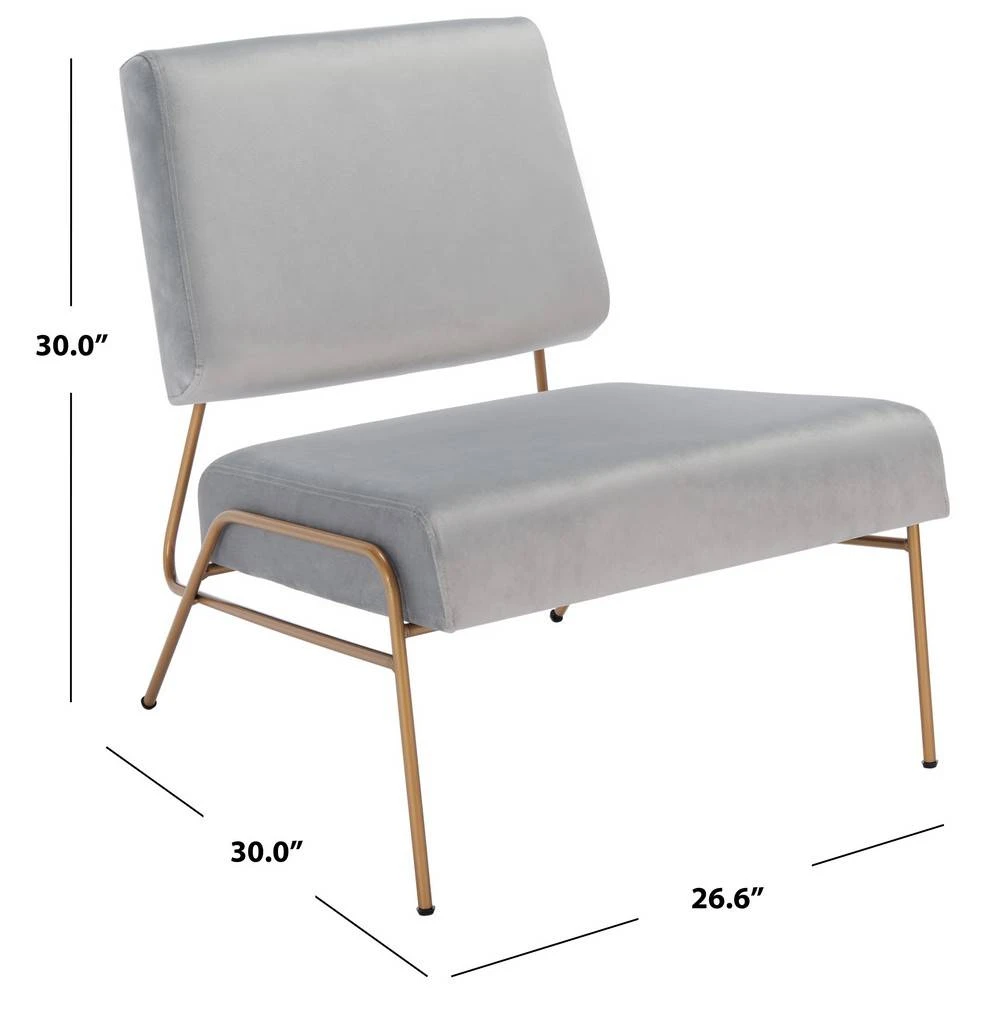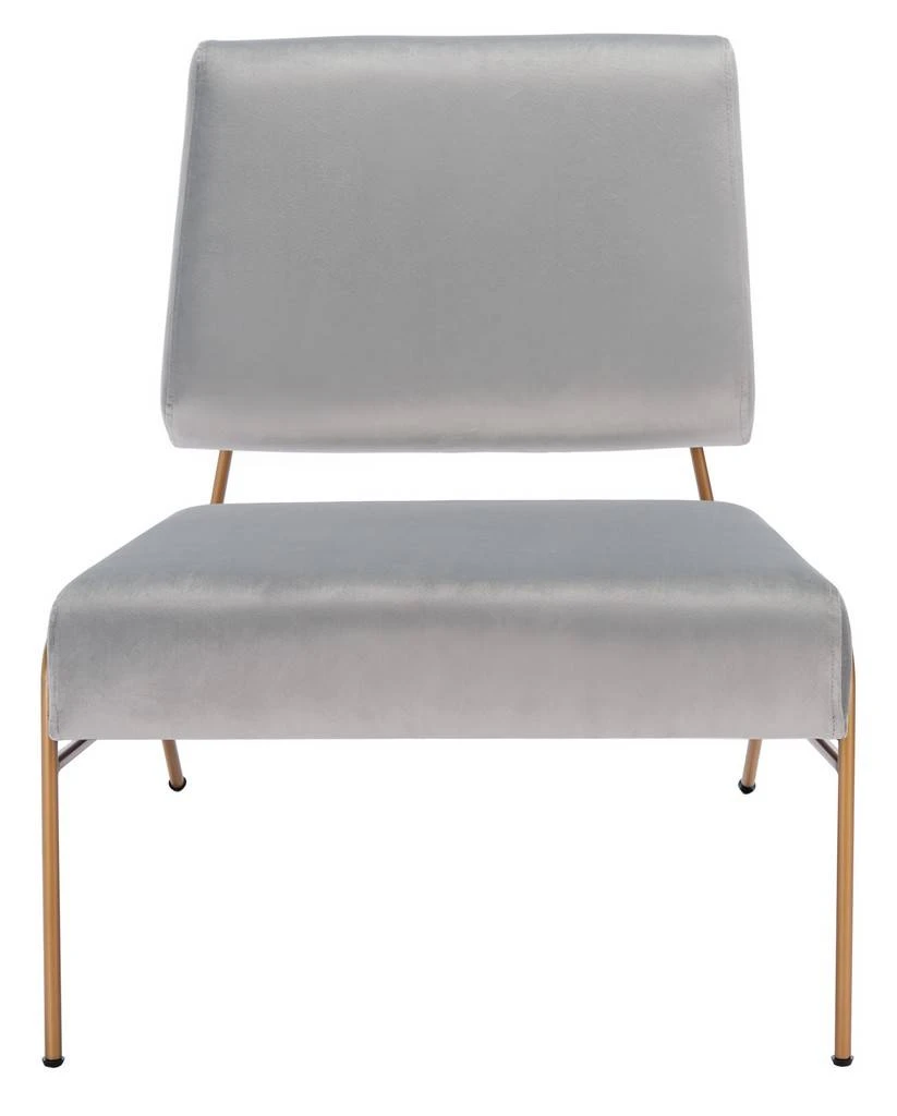 Styled after the iconic Cantilever chair, this Romilly Accent Chair updates retro chic for today’s glamorous interiors. Plush velvet cushions in soft grey are perfectly juxtaposed with the shining gold finish on the slender open frame, and a relaxed silhouette makes Romilly luxuriously comfortable.