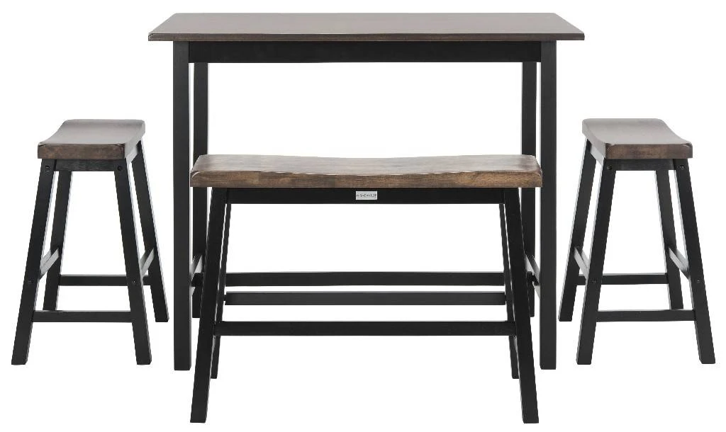 The transitional Ronin 4-piece pub table set is the ideal addition to kitchen, studio apartment, family room or entertainment room. Crafted from sturdy Malaysian Oak with rich dark espresso finish, it features a table, two low profile barstools and coordinating bench. As a bonus, use it for extra counter space for service during buffets and parties. Assembly required. Wood is a natural material with variations of color shade, configuration, streaks, and grain structure. Each individual piece of Safavieh furniture has characteristic markings that will differ from photo and showroom samples. Regular attention and maintenance of fine furniture can ensure its beauty for years to come. Always use felt pads under all articles to prevent discoloration or softening of the lacquer. Plastic and rubber bases on items can discolor wood.