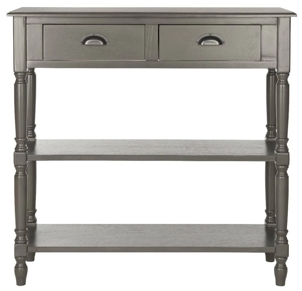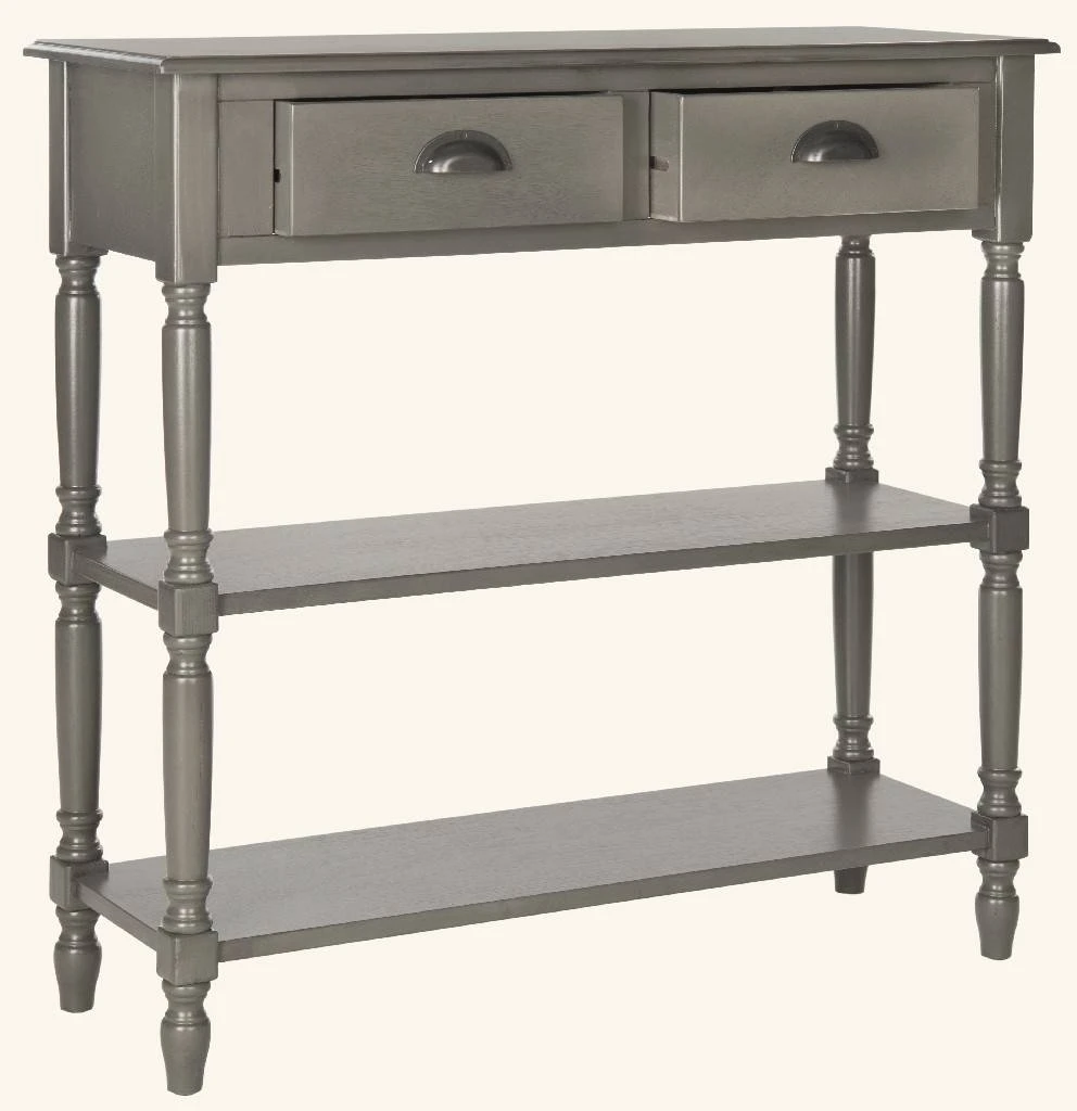 A welcome addition to an entry hall, or , the charming Salem pine console harmonizes with country cottage and coastal interiors. Crafted with a chic grey painted finish, this spindle-leg console has half-moon handles on its drawers.