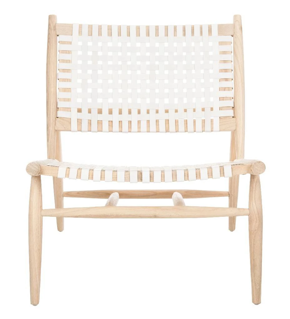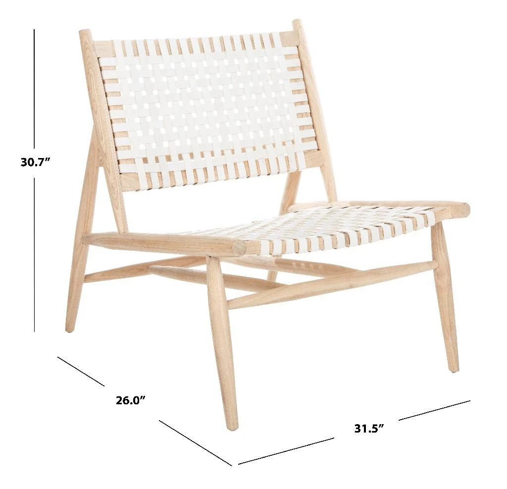 A natural beauty, this stylish contemporary leather woven accent chair is a new design classic. Its exquisite craftsmanship highlights the clean, elegant lines of its stunning sunkai wood and the bright white woven leather of its generous lounge seat.