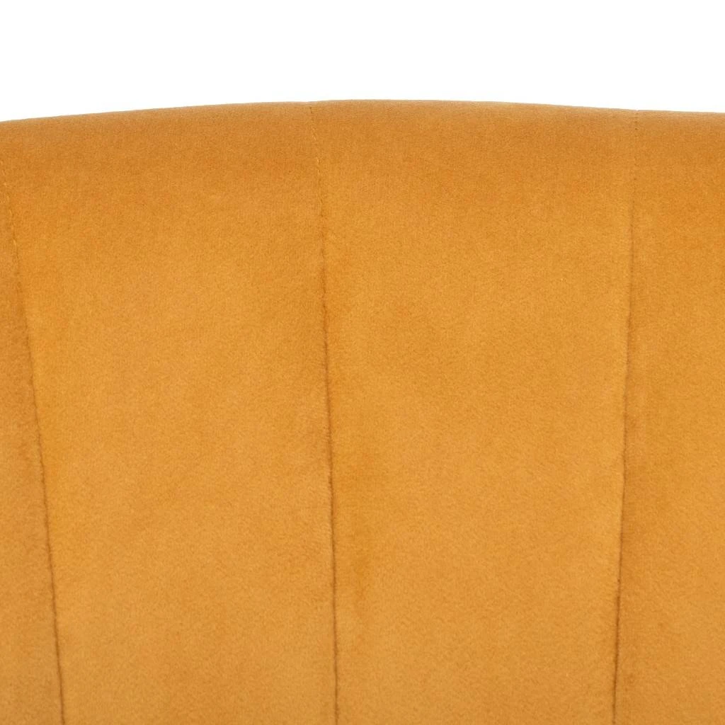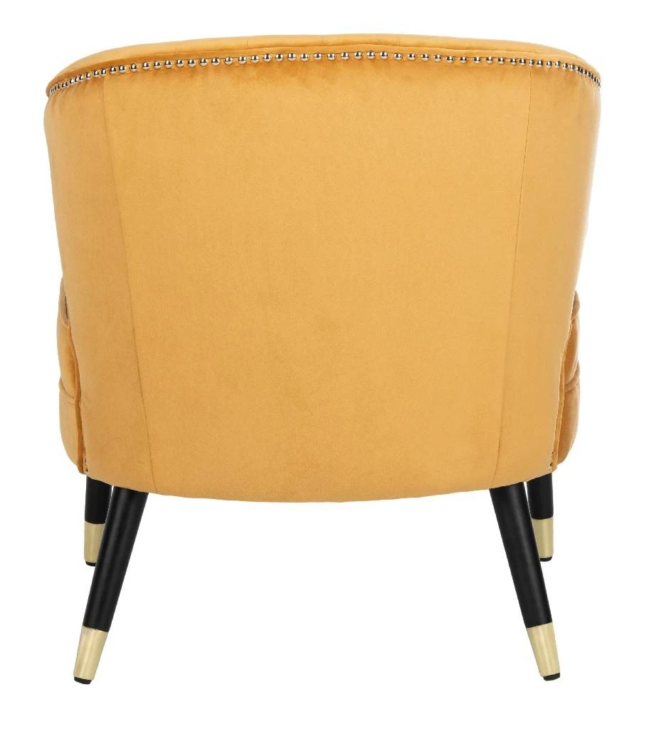 Curl up and unwind in this retro-style wingback accent chair. Inspired by vintage designs, its plush marigold velvet upholstery with luxurious channeling is an instant invitation to relax. The chic caps on its black wood legs complete its retro look.