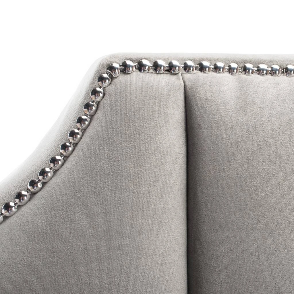 Designed to be a spectacular focal point of the modern luxurious , this Streep Bed epitomizes Old Hollywood glamour. Streep’s richly tufted grey velvet headboard features polished nailhead trim that highlights its gentle curves.