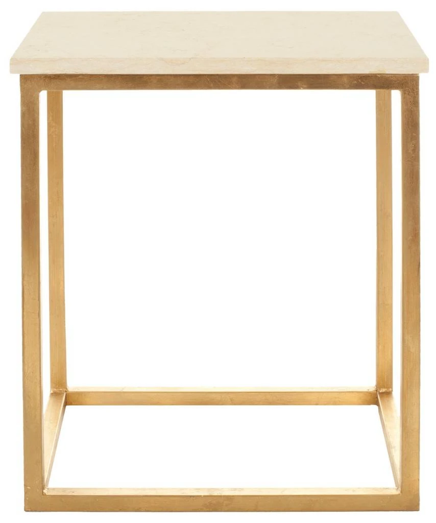 The classic straight lined cube table morphs into the open and airy Tad Accent Table. Delicate but sturdy iron legs are finished in gold, contrasted with a soft ivory toned granite top.