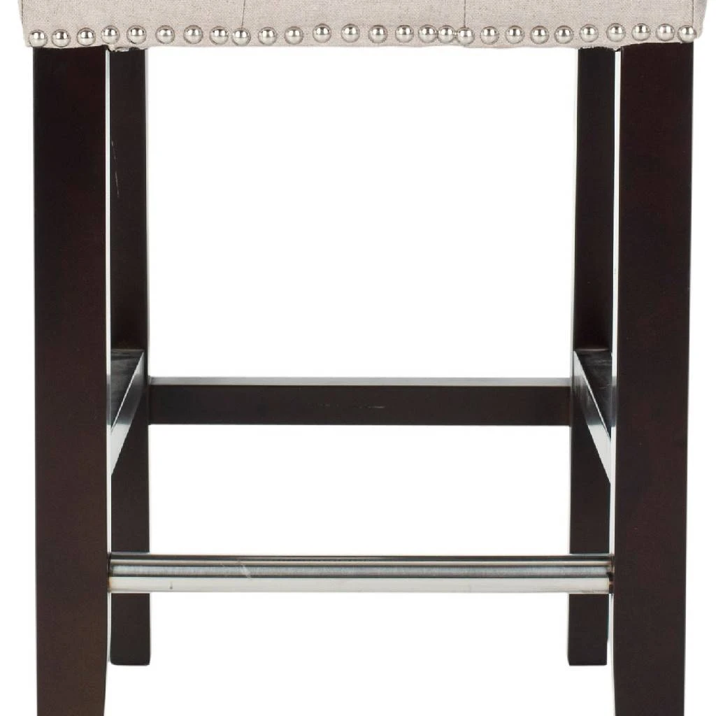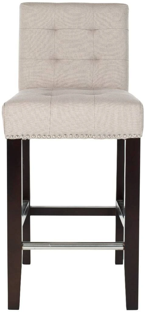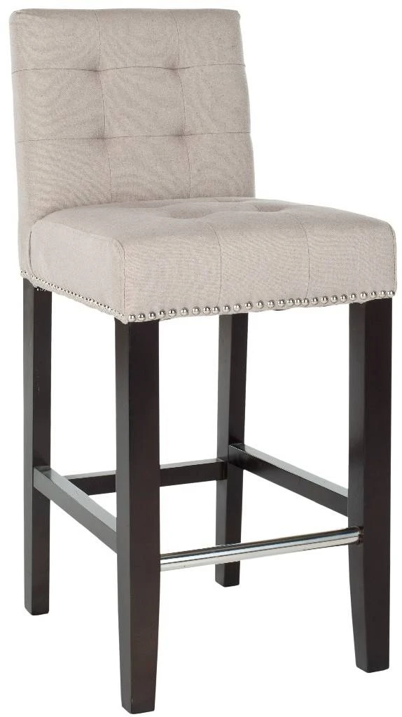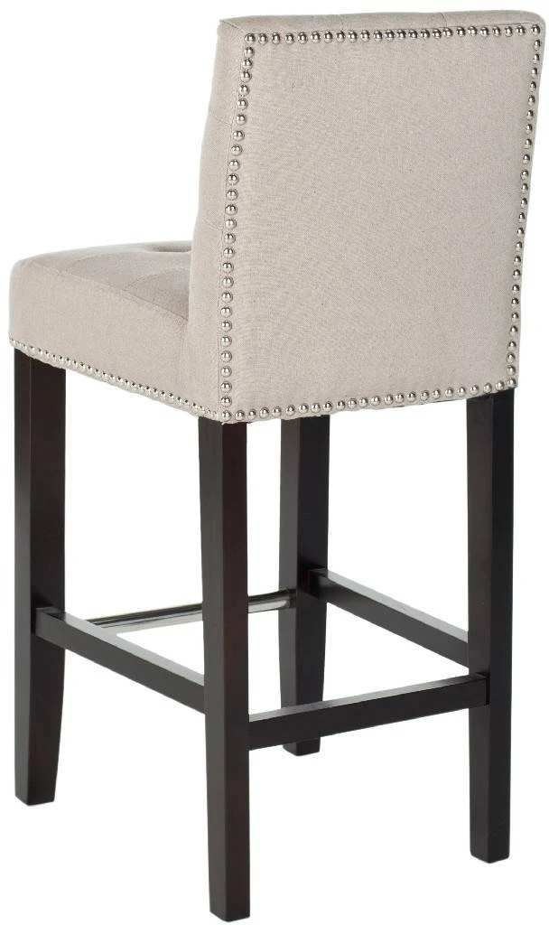 The Thompson Counter Stool offers classic design and sumptuous comfort for traditional or transitional interiors. Featuring a espresso finish on birch wood legs and upholstered in taupe linen with nail head trim, Thompson is sure to add a touch of elegance to your counter seating. With button detailing on the seat and back cushions, Thompson offers fashion and function. No assembly required.