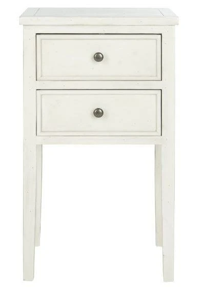 Inspired by the straightforward lines of Craftsman style, the Toby nightstand in shady white poplar wood is pretty and practical. With straight legs and two ample drawers, this piece is narrow enough to squeeze into tight spaces but tall enough to use as a bedside table. The classically designed Toby end table will complement a myriad of decorating styles from country to rustic and transitional. Wood is a natural material with variations of color shade, configuration, streaks, and grain structure. Each individual piece of Safavieh furniture has characteristic markings that will differ from photo and showroom samples. Regular attention and maintenance of fine furniture can ensure its beauty for years to come. Always use felt pads under all articles to prevent discoloration or softening of the lacquer. Plastic and rubber bases on items can discolor wood.