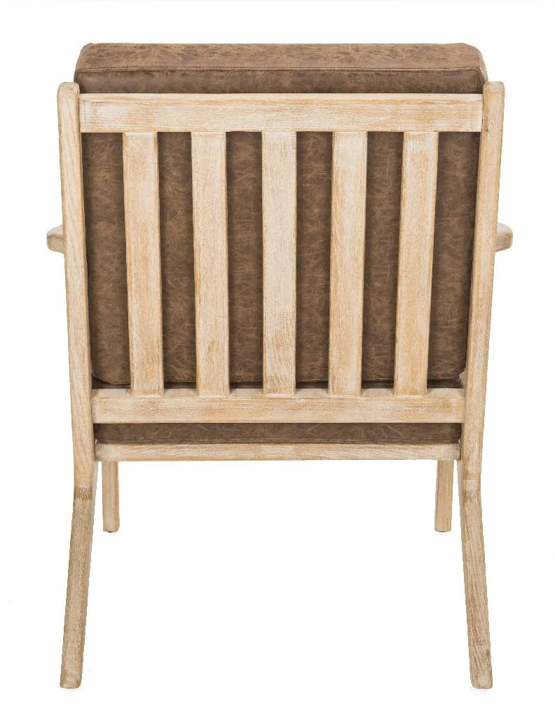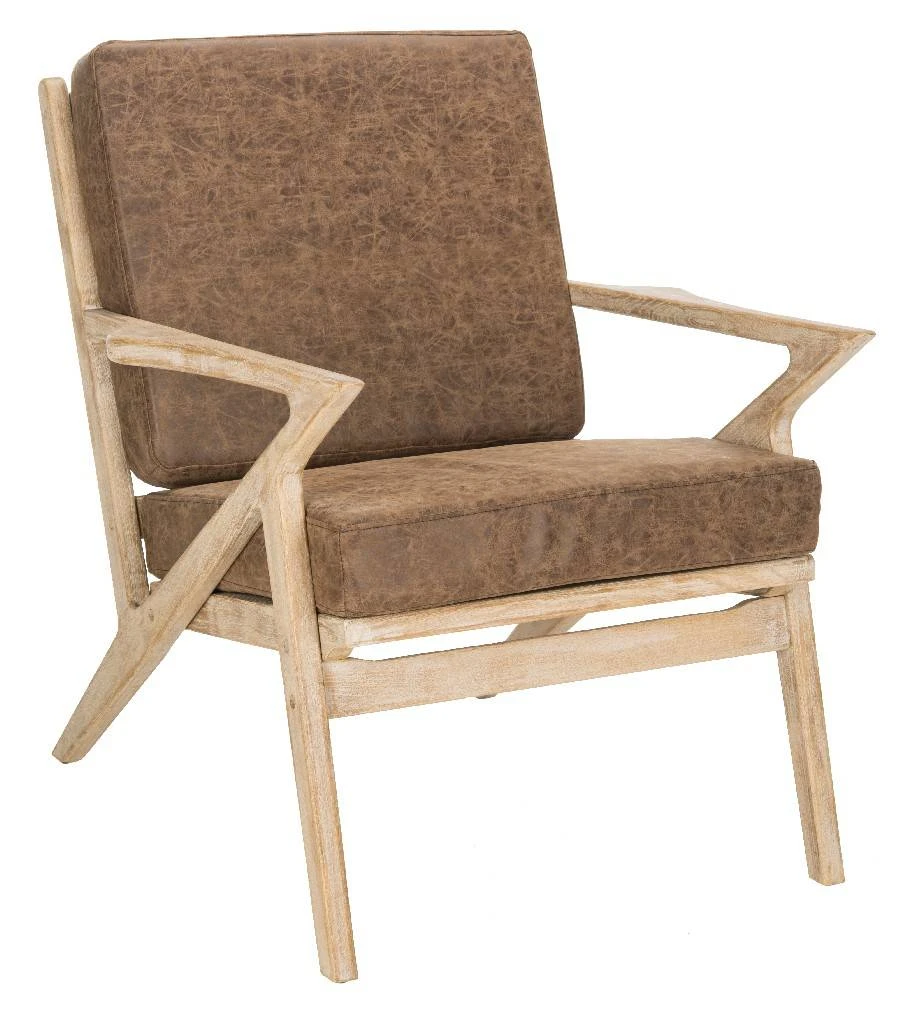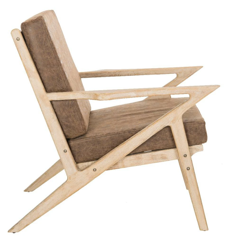 A blend of dynamic lines and soothing soft upholstery, this contemporary accent chair brings classic modern style to the . Designers love its Danish-inspired elm wood back, and its white washed finish and light brown upholstery are timeless.