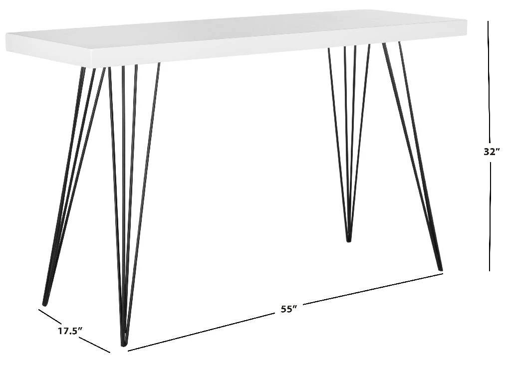 Sleek and contemporary, the Wolcott lacquer console table makes for a grand entrance in the front hall and a dramatic statement in any room. Its lustrous white lacquer top appears to float on a base of hairpin-thin legs in black iron.